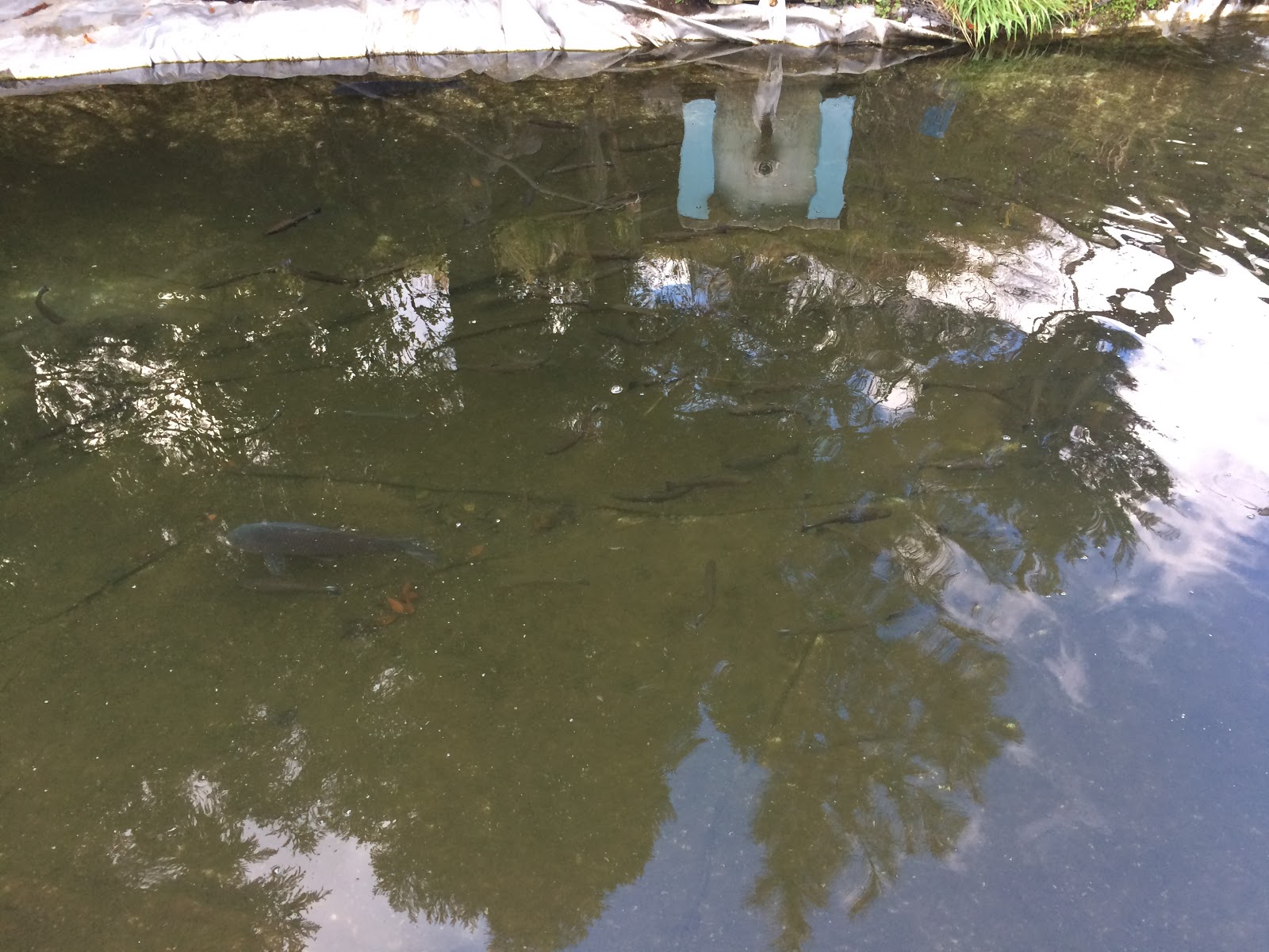 見えにくいかもしれませんが・・・ニジマスと一緒にコイが泳いでます(;^ω^)