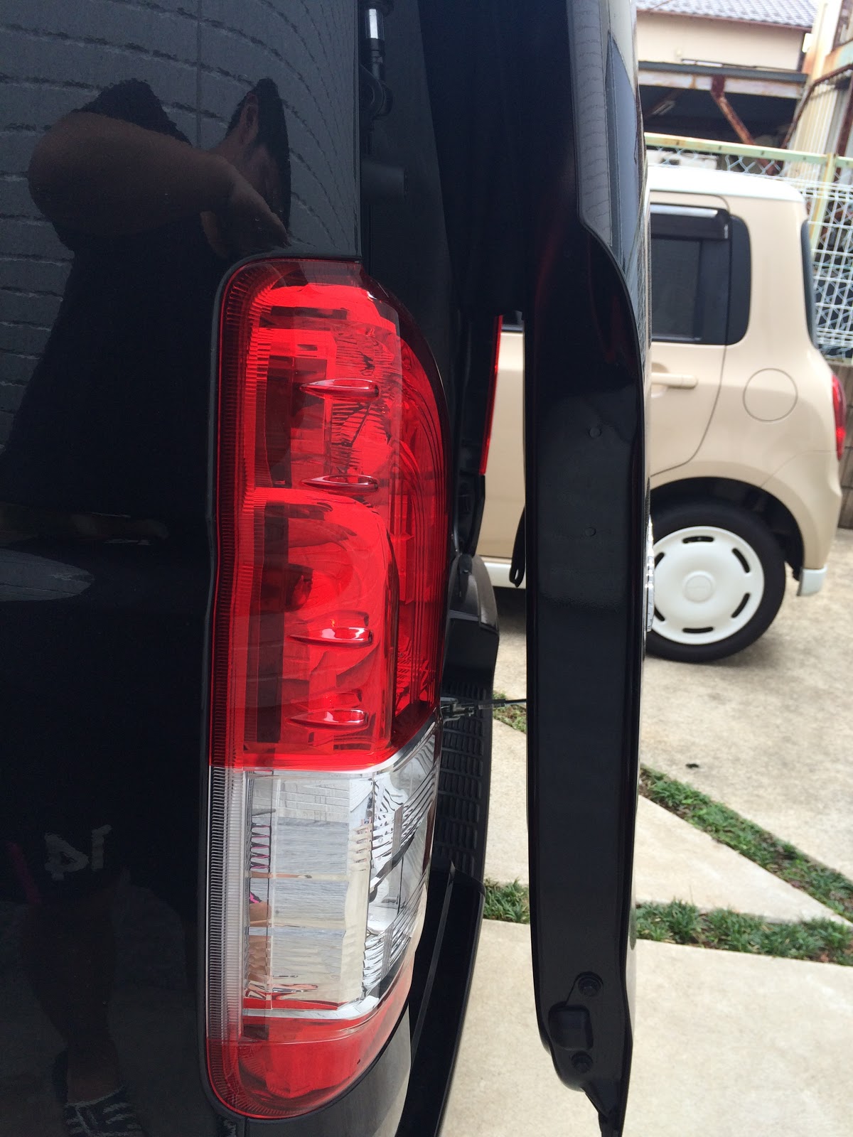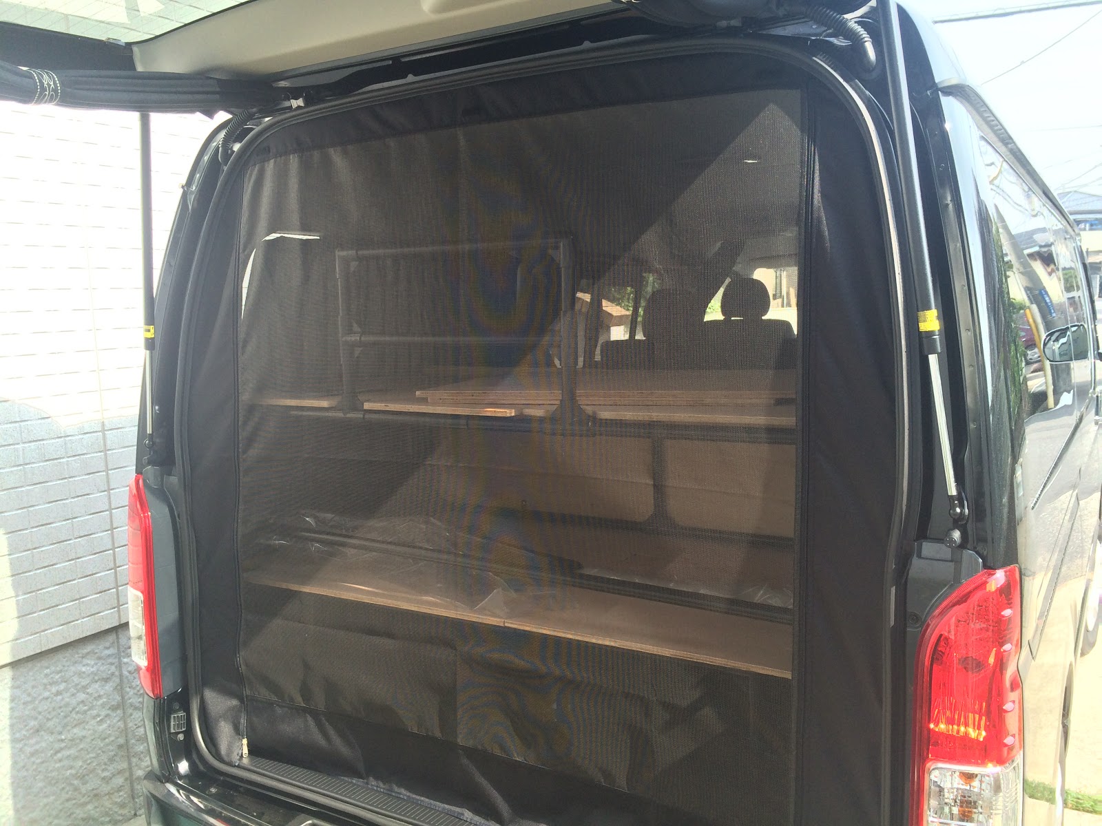 サイドはドア開けっ放しでもカーテンで目隠しができるのですが、リアは というと・・・