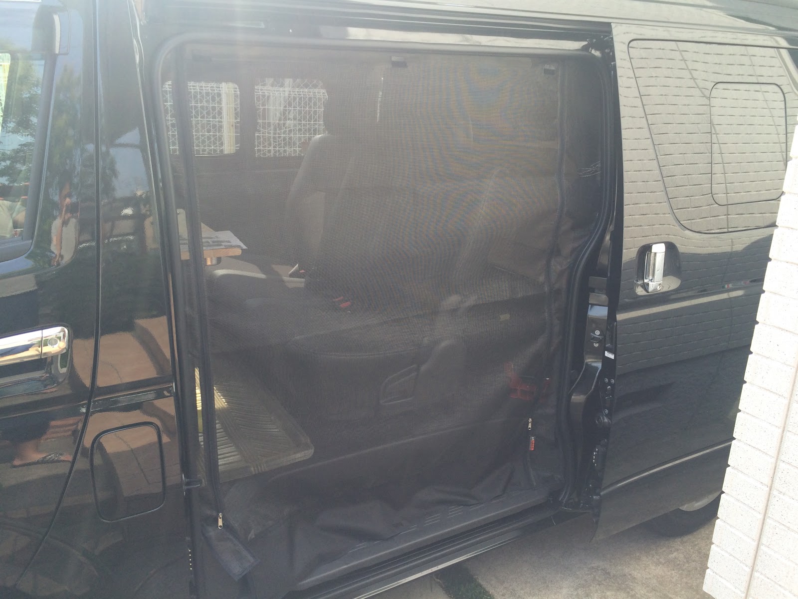 ハイエースバンは両側スライドドアですが、防虫ネットがどんなもんかわからなかったので、とりあえずリアと助手席側の2面しか買わなかったです。でも簡単に取り付けられるので、スライドドア用は両側あってもよかったかな?と思います。