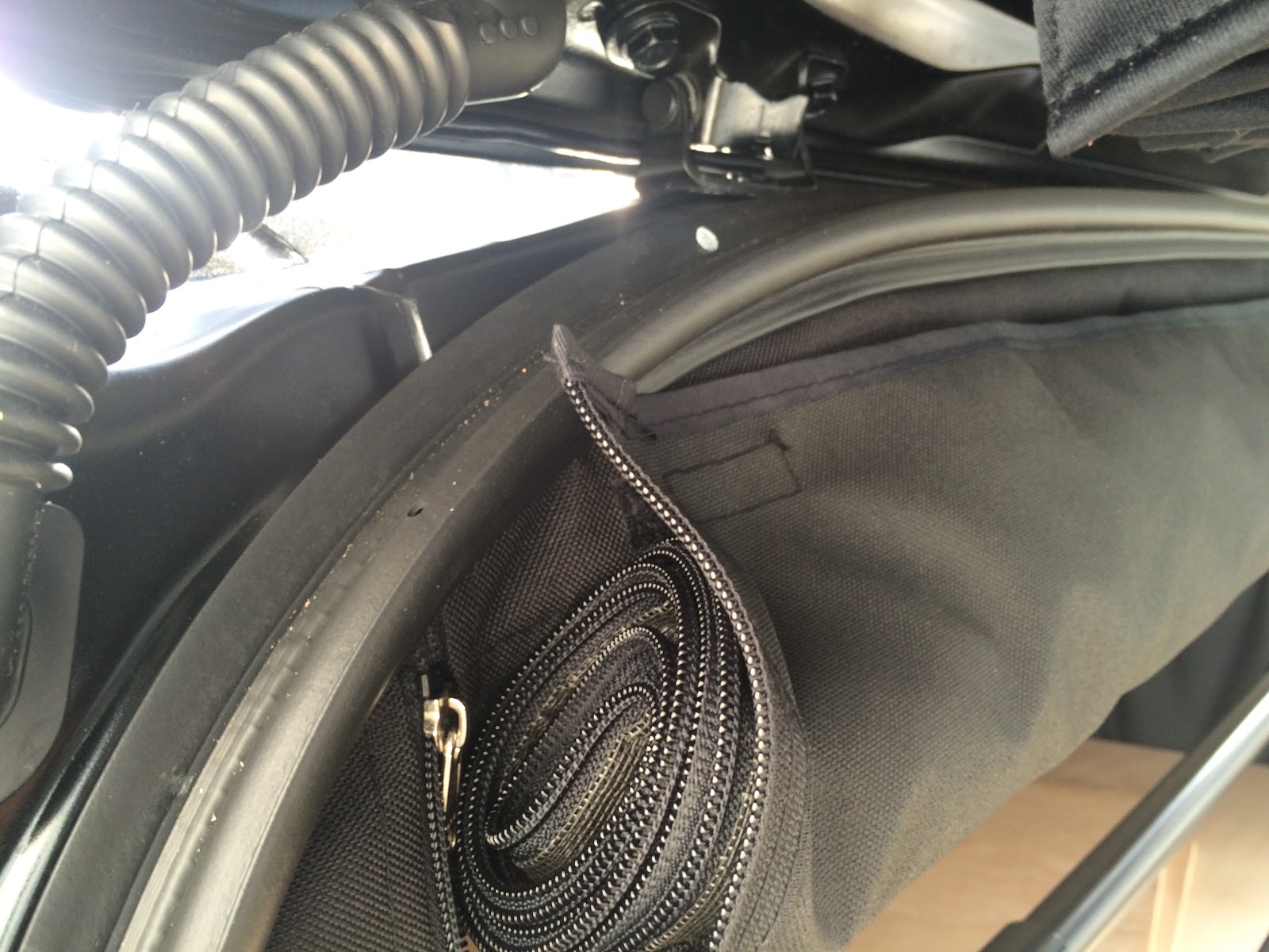 取り付けは簡単で、ドアのとこにあるゴムを少しずつはずし、外装と内貼りの間にネットを差し込み、ゴムを戻すだけ。ポイントは少しずつゴムを外すことですかね~。